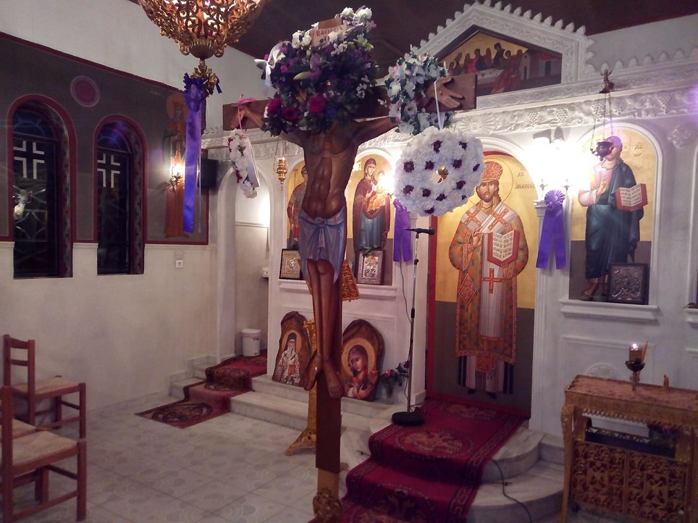 Η Ακολουθία των Αγίων Παθών και η αναπαράσταση της Σταύρωσης του Ιησού Χριστού, τελέστηκαν απόψε παρουσία πιστών στον Ιερό Ναό Αγίου Δημητρίου, στον οικισμό Πλατάνου Καλυβίων.