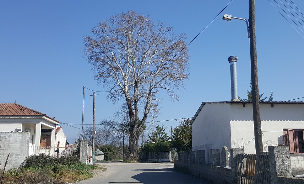 Ο αιωνόβιος πλάτανος, ύψους 25 μέτρων, ο οποίος δεσπόζει έξω από τον περίβολο του πρώην Παιδικού Σταθμού του χωριού μας, στέκει αγέρωχος εδώ και αιώνες και αποτελεί χωρίς υπερβολή, ένα δέντρο – σύμβολο για τα Καλύβια, που αξίζει να προστατευθεί και να αναδειχθεί!