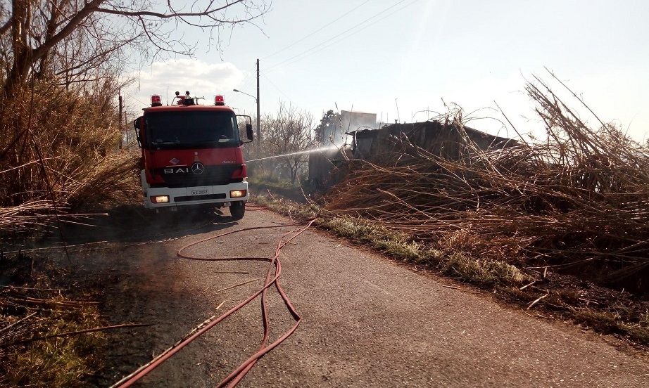 Φωτιά έκαψε αποθήκη σήμερα το μεσημέρι στον οικισμό Πλατάνου Καλυβίων, πυρκαγιά η οποία ξεκίνησε από καλαμιές στην ανατολική πλευρά του δρόμου και λόγω του δυνατού αέρα μεταπήδησε στην απέναντι πλευρά, όπου εκεί κοντά βρίσκονταν αποθήκη με ζώα και κατοικίες.