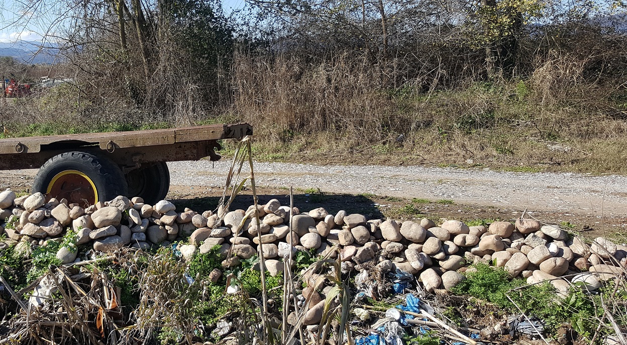 Οι παλιές πέτρες ή στρουμπουλίθια όπως τις έλεγαν οι γεροντότεροι, ¨λίαζονται¨ στην άκρη του χωμάτινου αύλακα και θυμίζουν ότι κάποτε αποτελούσαν κομμάτια των σπιτιών του παλιού χωριού των Καλυβίων, λίγα μέτρα από τον κοιμητηριακό ναό του Αγίου Νικολάου.