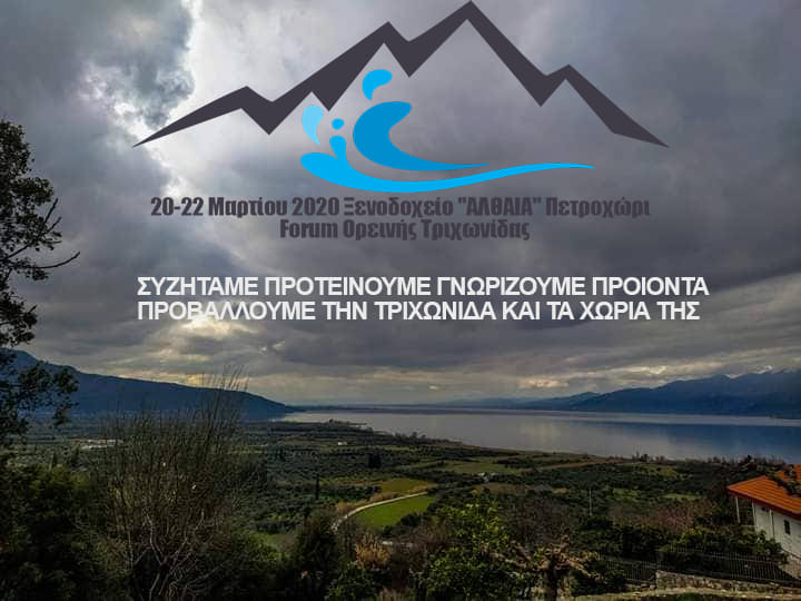Την Παρασκευή 20 Μαρτίου 2020 ανοίγει τις πύλες του το Forum Ορεινής Τριχωνίδας στο Ξενοδοχείο ΑΛΘΑΙΑ, στο Πετροχώρι Τριχωνίδας.