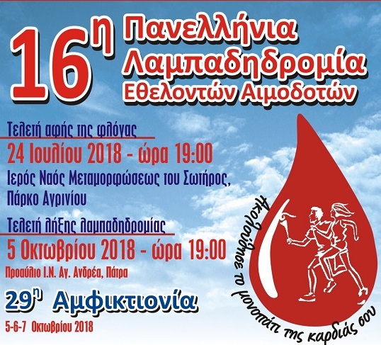 Η ΠΟΣΕΑ και οι συνδιοργανωτές της 16ης Πανελλήνιας Λαμπαδηδρομίας των Εθελοντών Αιμοδοτών εκφράζουν την απέραντη οδύνη τους για τα ανθρώπινα θύματα της πύρινης λαίλαπας που κατέκαψε την Αττική και απευθύνουν τα θερμά τους συλλυπητήρια στους συγγενείς των νεκρών.