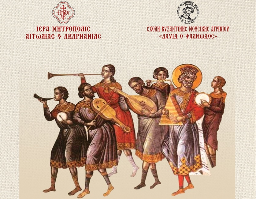 Η Σχολή Βυζαντινής Μουσικής «Δαυίδ ο Ψαλμωδός» της Ιεράς Μητροπόλεως Αιτωλίας & Ακαρνανίας, με την ευκαιρία της λήξεως των μαθημάτων του σχολικού έτους, θα πραγματοποιήσει Μουσική Εκδήλωση Βυζαντινής και Παραδοσιακής Μουσικής με τίτλο «Άδοντες και Ψάλλοντες».