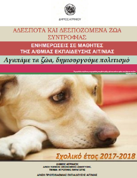 O Δήμος Αγρινίου υλοποιεί ολοκληρωμένο πρόγραμμα διαχείρισης των αδέσποτων ζώων του Δήμου που έχει ως κύριο βασικό άξονα την:
