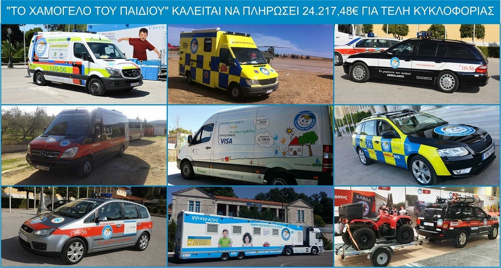 Με δελτίο τύπου που εξέδωσε ο οργανισμός «Το Χαμόγελο του Παιδιού» εκφράζει για μια ακόμη φορά τις ενστάσεις του για το ποσό των 24.217,48 ευρώ που πρέπει να πληρώσει φέτος στο δημόσιο, για τέλη κυκλοφορίας για τα ασθενοφόρα και τα οχήματα που δίνουν λύσεις καθημερινά σε χιλιάδες παιδιά που έχουν ανάγκη!