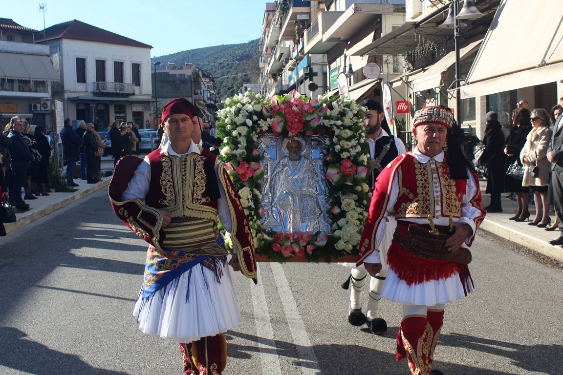 Με λαμπρότητα και με τις πρέπουσες τιμές, μετά το πέρας της Θείας Λειτουργίας, όπου χοροστάτησε ο Σεβασμιώτατος Μητροπολίτης Αιτωλίας & Ακαρνανίας, κ. Δαμασκηνός, πραγματοποιήθηκε σήμερα Κυριακή 18 Ιανουαρίου, στην Αμφιλοχία, η Λιτάνευση της Ιεράς Εικόνας του πολιούχου Αγίου Αθανασίου στους δρόμους της πόλης.