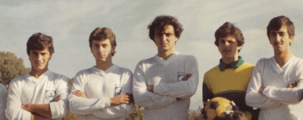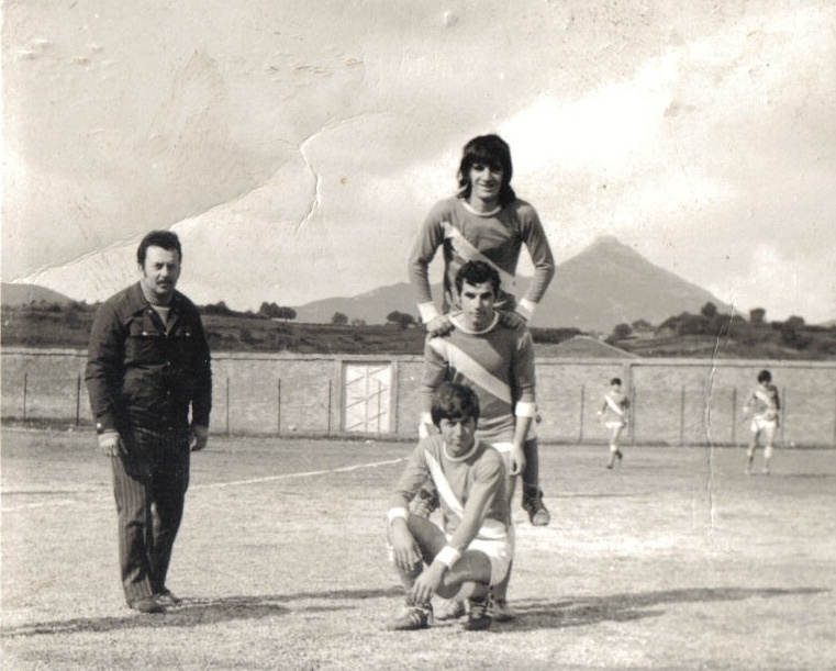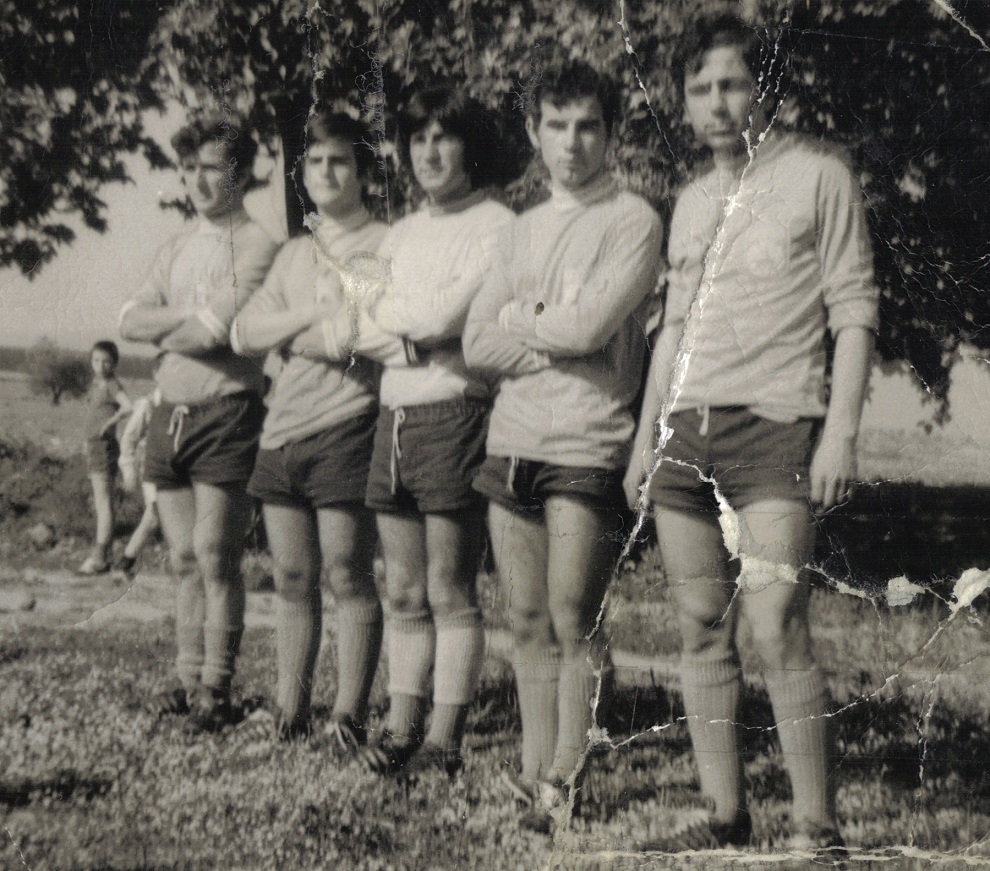 1981-82: Με λευκή εμφάνιση. Από αριστερά διακρίνονται οι Βαγγέλης Π. Ζαπαντιώτης, Γιάννης Β. Κοτρώτσος, Νίκος Δ. Ζαπαντιώτης, Βαγγέλης Διονυσάτος (τερματοφύλακας), Σπύρος Α. Γεωργίου.