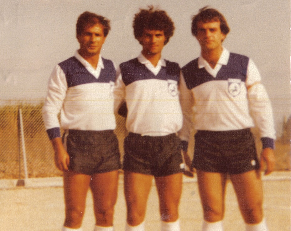 1983: Λευκή και μπλε απόχρωση φανέλας. Διακρίνονται από αριστερά: Χρήστος Ι. Τάγκαλος, Ανδρέας Τσιλίκας, Νίκος Κ. Στρατόπουλος