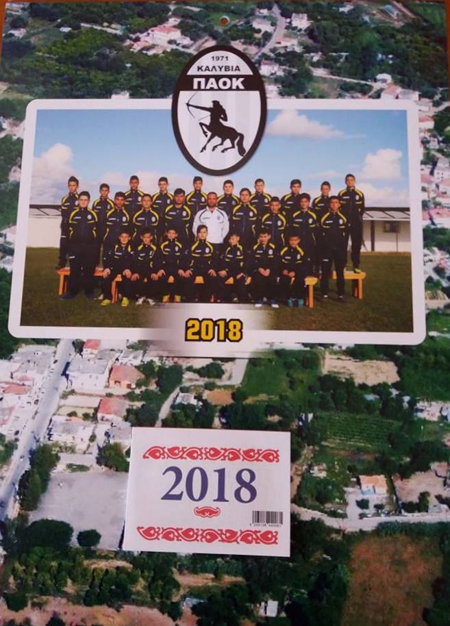 Για το λόγο αυτό έγινε πριν λίγες μέρες φωτογράφιση όλων των ποδοσφαιριστών και του προπονητή τους στο γήπεδο Καλυβίων, φωτογραφία που αποτελεί το κεντρικό θέμα του ημερολογίου. Επίσης υπάρχει αεροφωτογραφία του χωριού μας που μαζί με το καλεντάρι του νέου χρόνου, συνθέτουν αυτή την εορταστική προσπάθεια.