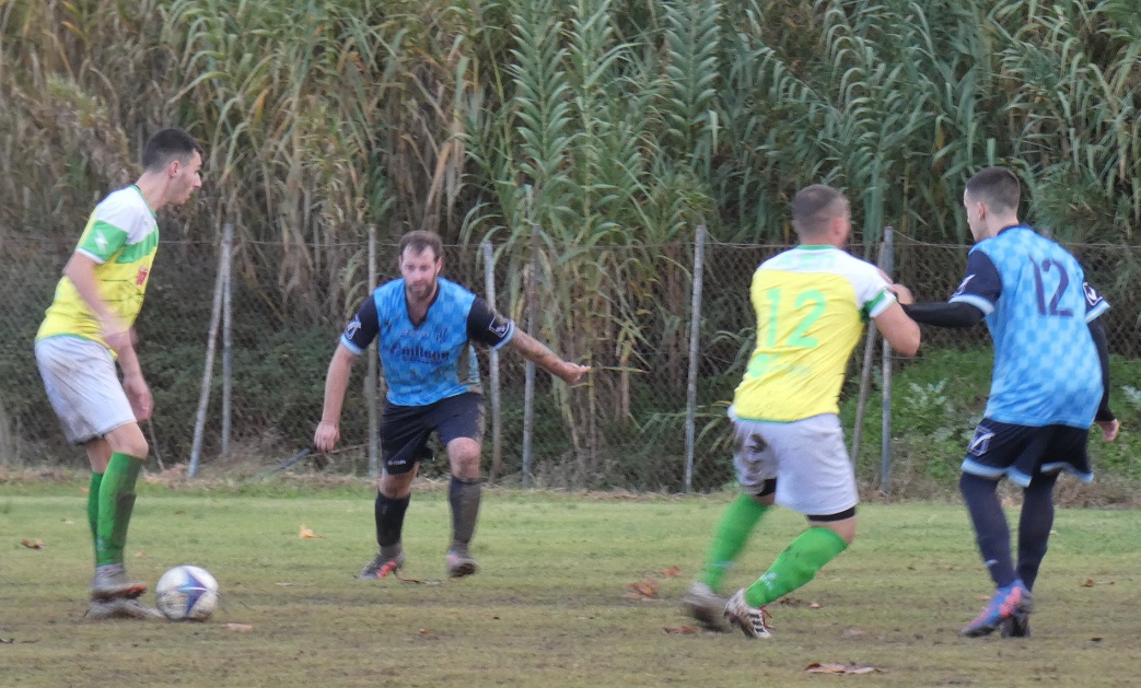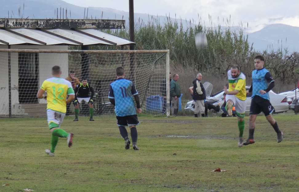 41΄ΓΚΟΛ: Αντεπίθεση των ¨Καλυβιωτών¨ με τον Χρ. Ζαχαράτο, ο οποίος τροφοδότησε τον Σ. Τασούλη, με τον τελευταίο να πλασάρει στην ¨κλειστή¨ γωνία του Μαρκόπουλου, κάνοντας το 3-2.