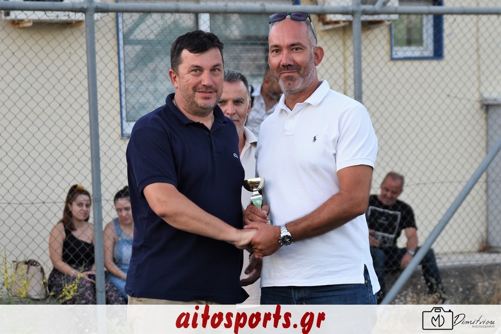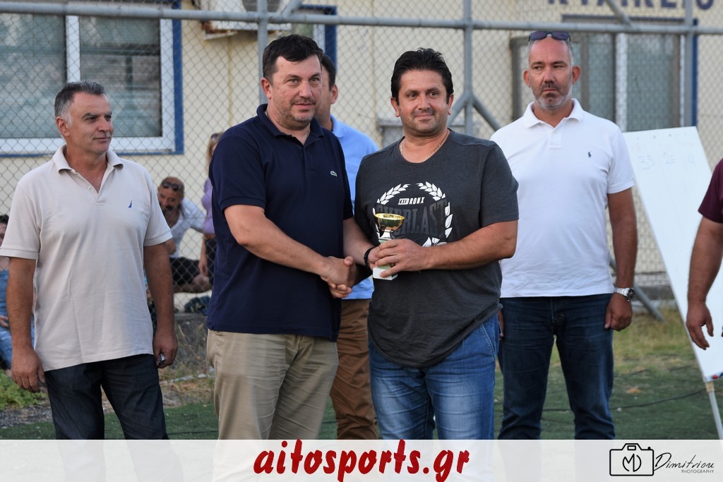 Το κύπελλο παρέδωσε το μέλος της διοίκησης της ΕΠΣΑ, Γιάννης Αναστασίου, προς τον εκπρόσωπο του ΠΑΟΚ, Γιώργο Καραθάνο, ενώ στην εκδήλωση παρευρέθηκε και ο Πρόεδρος Κοινότητας Καλυβίων, Δημήτρης Αναστασίου.