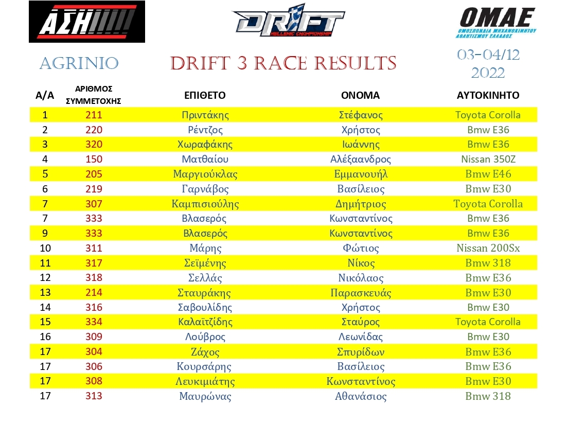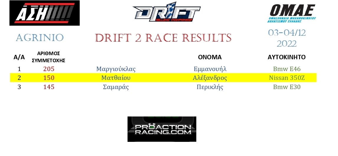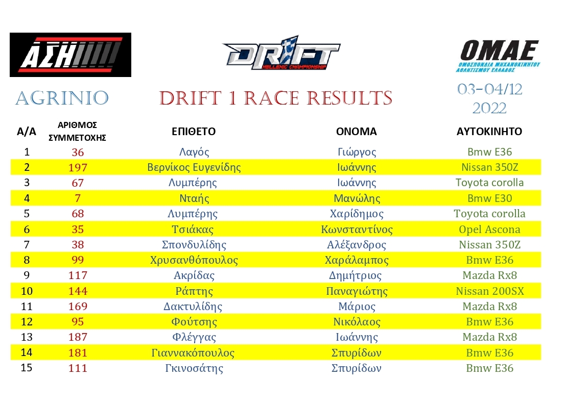 Δείτε τα αποτελέσματα Hellenic Drift Championship final round Agrinio raceway: