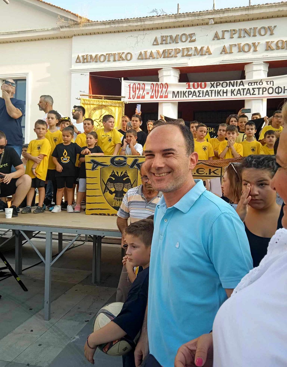 Το κύπελλο κρατούσε ο παλαίμαχος ποδοσφαιριστής της ΑΕΚ και Αγρινιώτης στην καταγωγή, Βασίλης Πλιάτσικας, ενώ στην εκδήλωση χαιρετισμούς απηύθυναν οι Αντιδήμαρχοι Αγρινίου, Κώστας Καλαντζής και Πάνος Μαρνέζος και ο Αντιπεριφερειάρχης Λάμπρος Δημητρογιάννης, κάνοντας ιδιαίτερες αναφορές στο προσφυγικό στοιχείο της περιοχής.