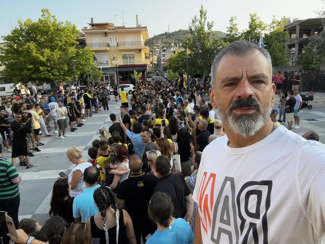Ο Γιώργος Πανταζόπουλος με τον βετεράνο Αγρινιώτη ποδοσφαιριστή της ΑΕΚ, Βασίλη Πλιάτσικα