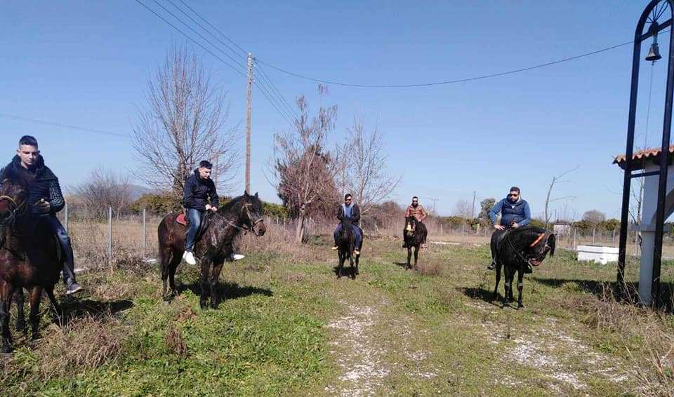 Λίγη ώρα πιο μετά, αναβάτες με τα άλογά τους πήγαν μέχρι το εξωκλήσι του Αγίου Γεωργίου για να ανάψουν ένα κερί και να τιμήσουν τον προστάτη άγιο προσκυνώντας την εικόνα του.