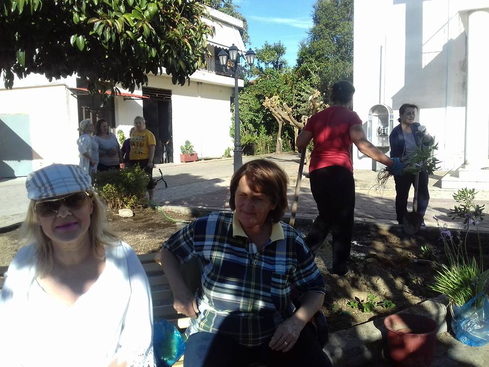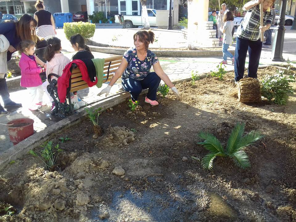 Εκτός από τα λουλούδια που αγοράστηκαν με έξοδα του συλλόγου, πολλές ήταν οι γυναίκες που έφεραν από τα σπίτια τους ανθοκομικά φυτά για να μπουν στα παρτέρια της πλατείας.