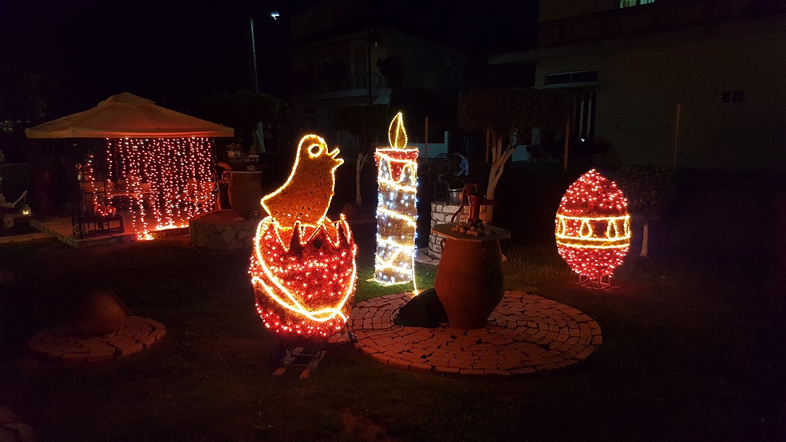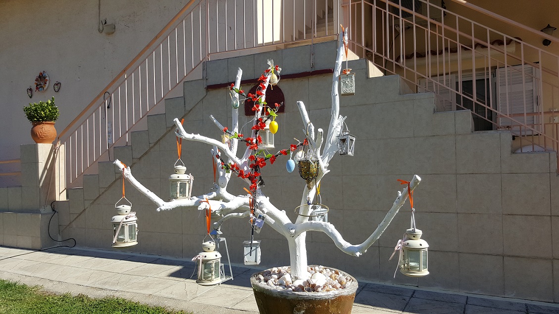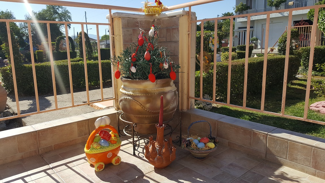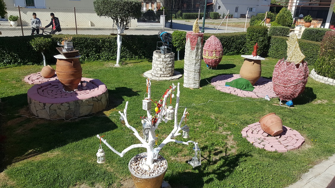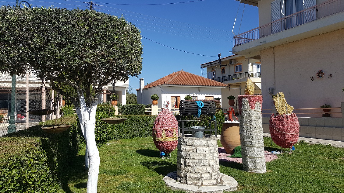 Η κυρία Νίκα Ζαπαντιώτη παρά τις πολύωρες εργασίες καθαριότητας αλλά και περιποίησης του κήπου της, δεν βαρυγκωμεί, αντιθέτως νοιώθει μεγάλη ικανοποίηση και χαρά για αυτά που φτιάχνει, ιδιαίτερα όταν δημιουργεί όμορφους και ευφάνταστους στολισμούς για το Πάσχα!