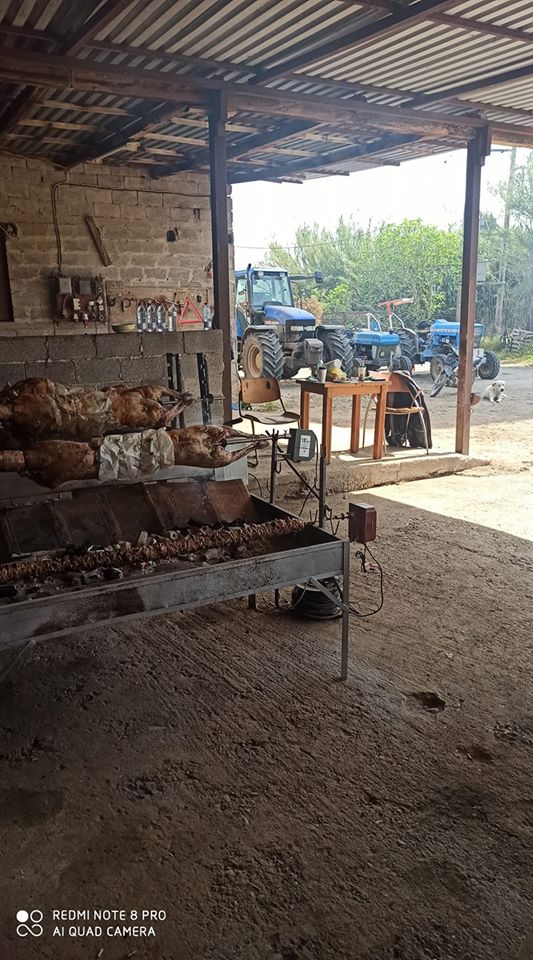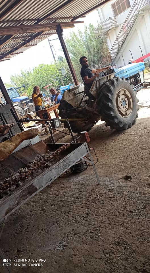 Πιθανά χάλασε ο ηλεκτρικός μηχανισμός για τη σούβλα, οπότε «πενία τέχνας κατεργάζεται» και ο συγχωριανός μας Μπάμπης Διονυσάτος, βρήκε μια άλλη λύση για να κάνει κάπως ανορθόδοξα τη δουλειά του, χρησιμοποιώντας το… παρτικόφ από ένα μικρό τρακτέρ μάρκας Φόρντ!