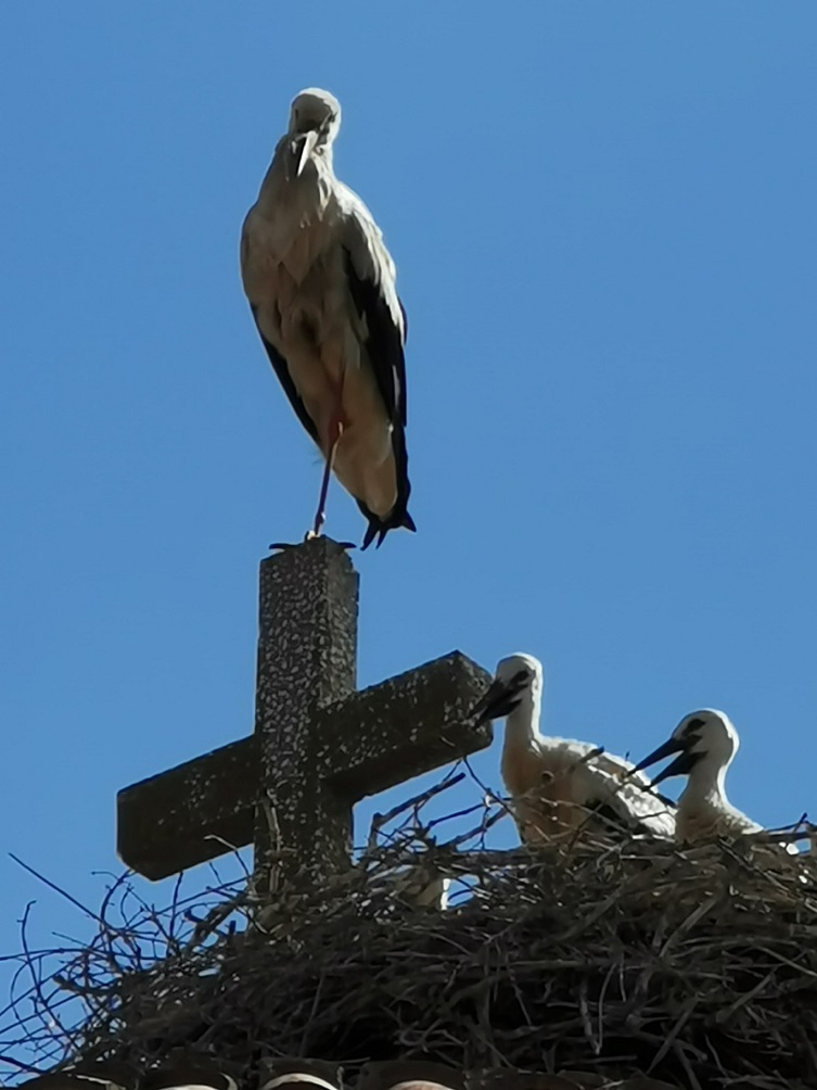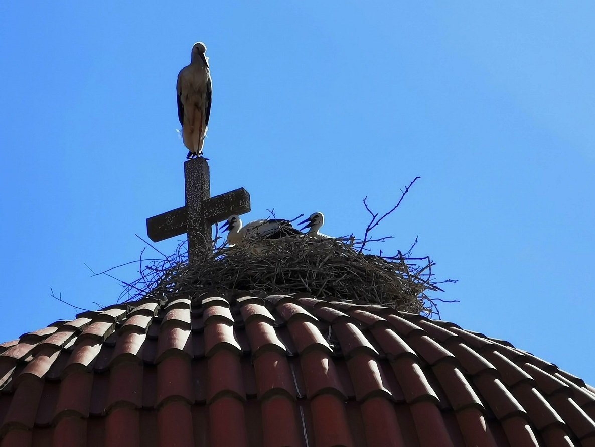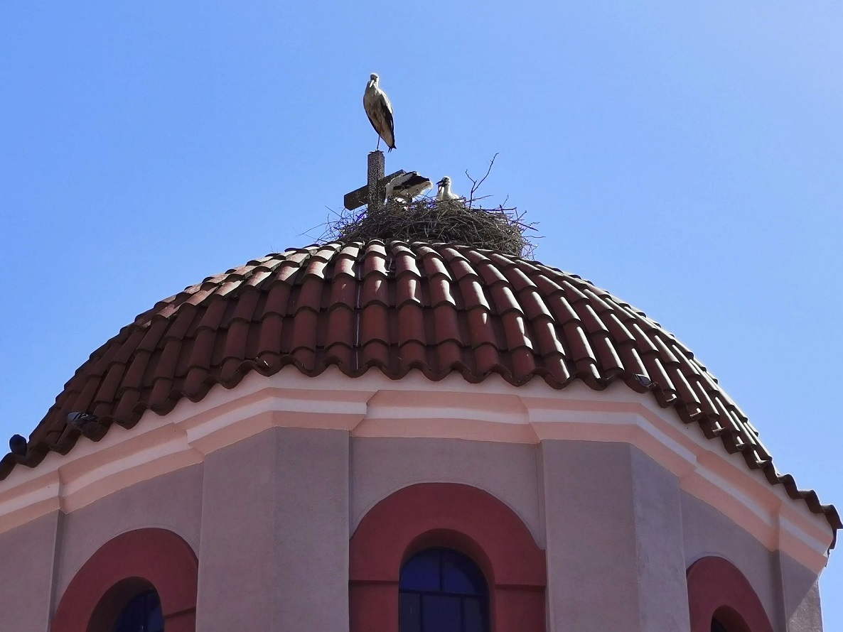 Η πελαργοφωλιά φτιάχνετε πάντα σε ψηλό σημείο, ενώ στα Καλύβια βρίσκεται μόνιμα στον τρούλο της εκκλησίας του Αγίου Νικολάου!