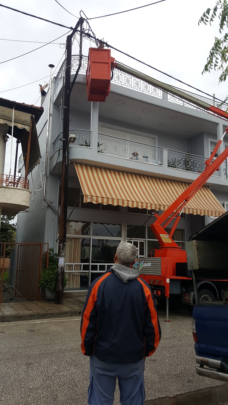 Συγκεκριμένα, μετά από σχετική ειδοποίηση κατοίκων για πιθανό βραχυκύκλωμα, το οποίο είχε ως αποτέλεσμα να διακόψει για κάποιες ώρες την ηλεκτροδότηση σε μερικές κατοικίες, κατέφθασε εκτάκτως το συνεργείο, με ειδικό γερανοφόρο όχημα, ώστε να διορθώσει την ζημιά, κάτι που έγινε στη συνέχεια.