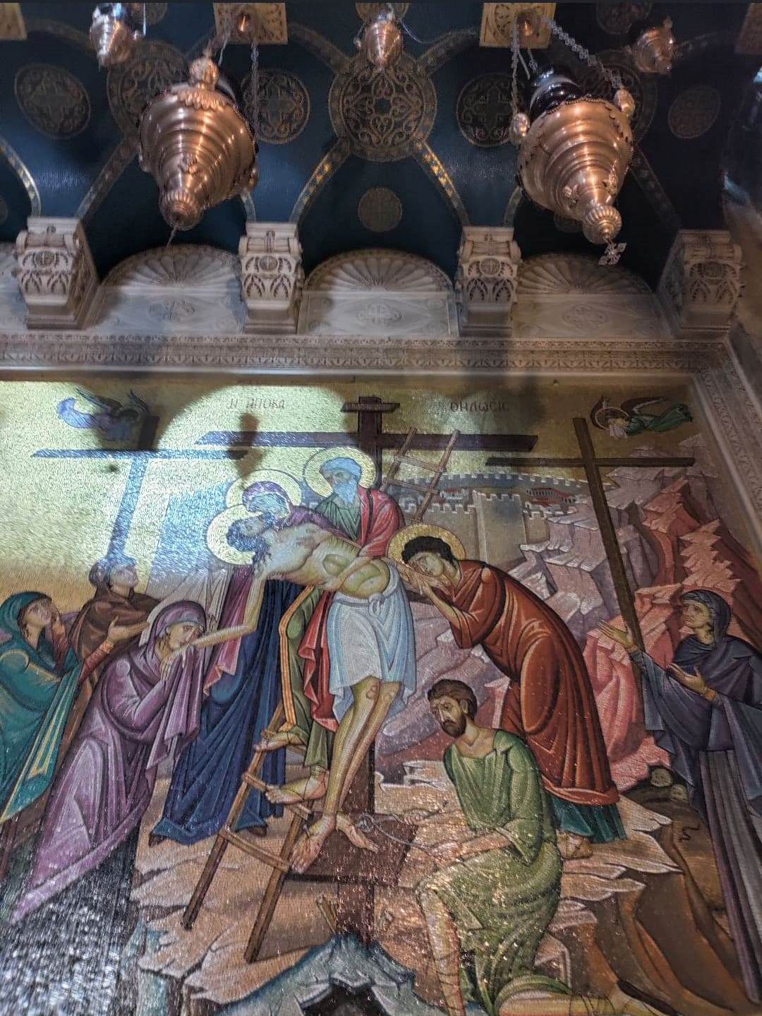 Πήγαμε στην Εκκλησία όλων των Εθνών, μια μεγάλη και πολύ όμορφη εκκλησία, ρωμαιοκαθολική, όπου εκεί έλεγαν πως ενώνονται όλες οι θρησκείες και μέσα στο στο ναό αυτό λένε πως υπάρχει ένα τμήμα του βράχου πάνω στον οποίο προσευχήθηκε ο Χριστός.