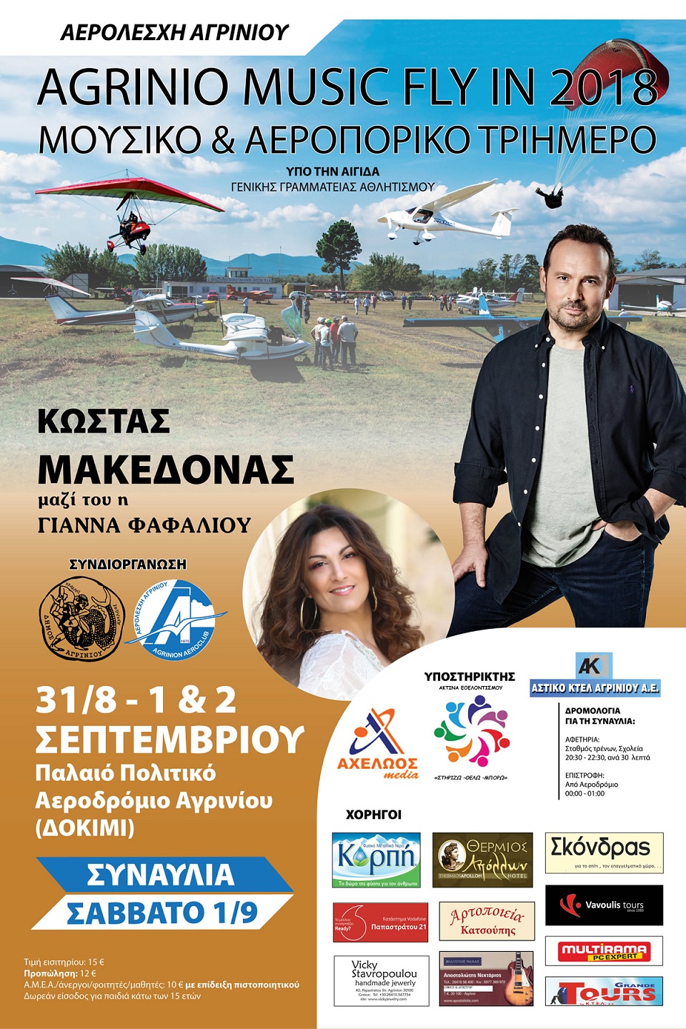 Η εκδήλωση εκτός των Αεροπορικών επιδείξεων, περιλαμβάνει μεγάλη συναυλία με τον Κώστα Μακεδόνα συνοδευόμενου από την Γιάννα Φαφαλιού, το βράδυ του Σαββάτου 1 Σεπτεμβρίου (από 21:30).