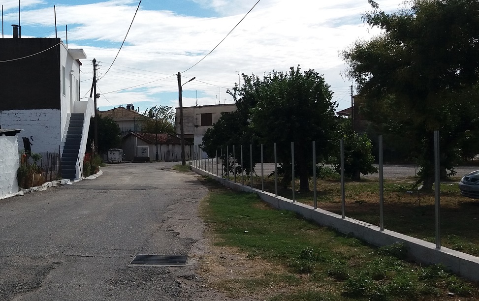 Ημιτελής παραμένει εδώ και μήνες η περίφραξη πίσω από την εκκλησία και το χώρο του πάρκινγκ, μιας και δεν έχει τοποθετηθεί ακόμη το συρμάτινο πλέγμα στους πασσάλους.