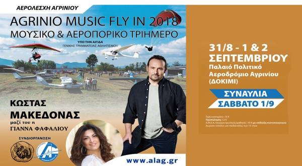 Με μεγάλη συμμετοχή του κόσμου τις ώρες των αεροπορικών επιδείξεων ολοκληρώθηκε το τριήμερο των εκδηλώσεων «AGRINIO MUSIC FLY IN 2018» (Παρ 31/8 και Σ/Κ 1 & 2/9/2018) που διοργάνωσε η Αερολέσχη Αγρινίου σε συνεργασία με τον Δήμο Αγρινίου, την Γενική Γραμματεία Αθλητισμού και την Ελληνική Αεροπορική Ομοσπονδία (ΕΛΑΟ).