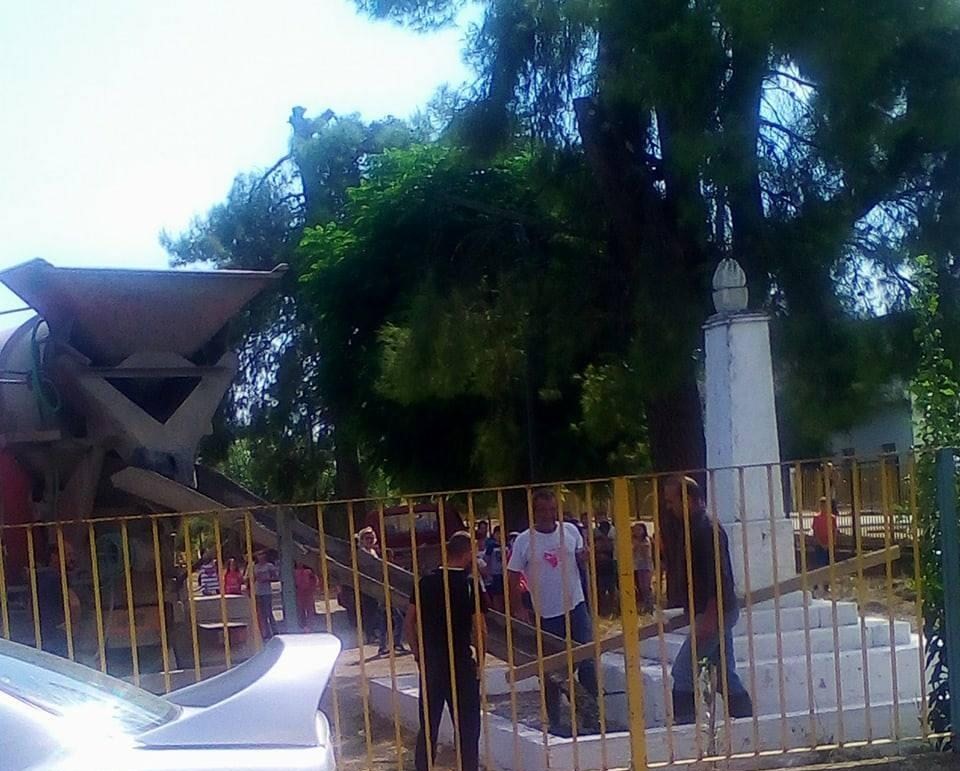 Εργασίες καθαρισμού και τσιμεντόστρωσης στο χώρο του Μνημείου Πεσόντων στο προαύλιο του Δημοτικού Σχολείου πραγματοποιήθηκαν σήμερα το πρωί με πρωτοβουλία της Τ.Κ. Καλυβίων.