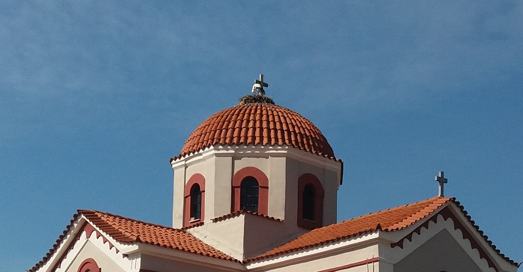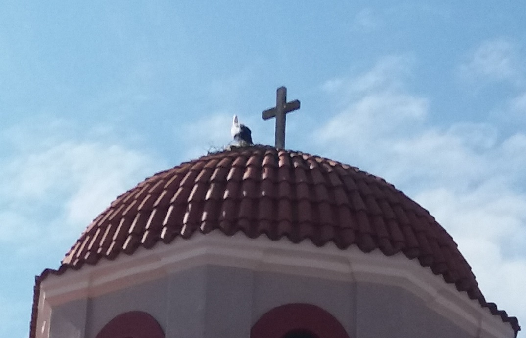 Όπως ο πελαργός που εμφανίσθηκε σήμερα στη φωλιά που είναι στον τρούλο της εκκλησίας του Αγίου Νικολάου και κατόπτευε από ψηλά τον κάμπο…
