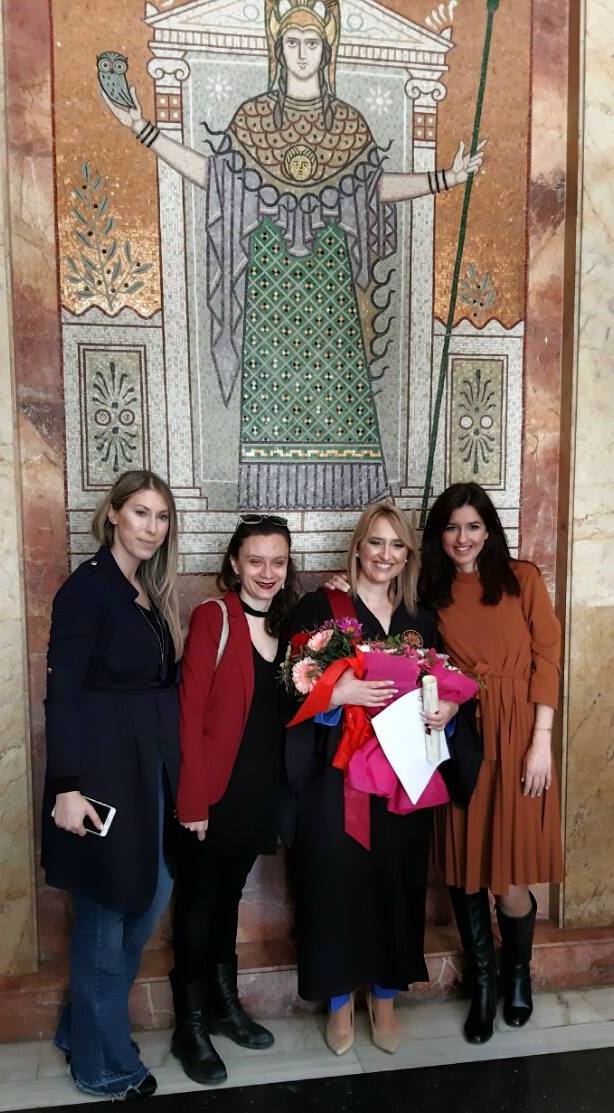 Ο μεταπτυχιακός τίτλος που πήρε πρόσφατα, αφορά τις "Διεθνείς Οικονομικές Σχέσεις" και το παρακολούθησε παράλληλα με την εργασία της, κατόπιν εισαγωγικών εξετάσεων στο Πάντειο Πανεπιστήμιο.