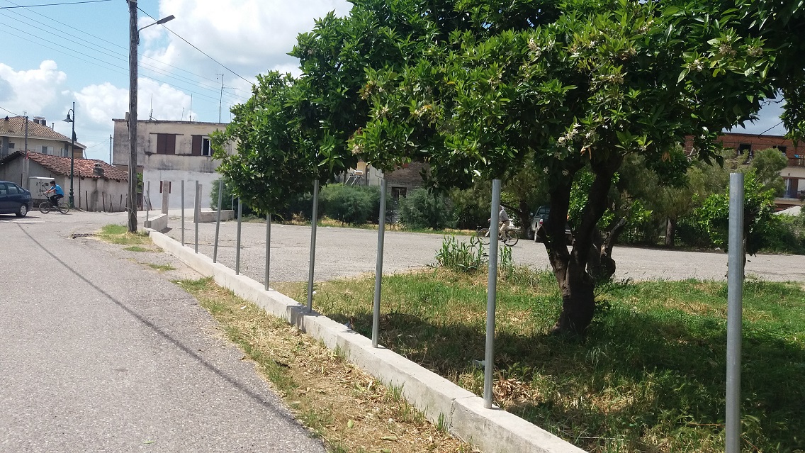 Σε αυτή την περίφραξη δεν έχει τοποθετηθεί το συρμάτινο πλέγμα, ενώ οι γαλβανιζέ πάσσαλοι μέρα με τη μέρα στρεβλώνονται από αγνώστους και ¨χάνονται¨ και ίσως καταλήγουν σε κάποια μάντρα μετάλλων…