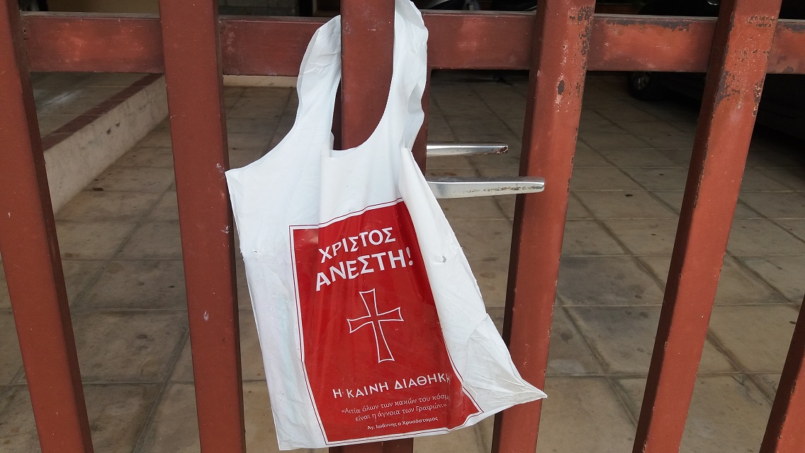 Στο εσωτερικό της η σακούλα είχε ένα βιβλίο με τον τίτλο Η ΚΑΙΝΗ ΔΙΑΘΗΚΗ εκδόσεων Ελληνικής Βιβλικής Εταιρείας χωρίς αρχαίο κείμενο, αλλά με μετάφραση και με διαπιστευτήρια προς τους καθηγητές που έκαναν την μετάφραση από την Ιερά Σύνοδο. Επίσης υπήρχαν 3 έντυπα, ένα για την μεταστροφή στο Χριστό ενός πρώην αμαρτωλού, ένα έντυπο με την ιδεολογία- πίστη της Ε.Ι.Ε. και μια απαντητική επιστολή, ώστε να αποσταλούν δωρεάν βιβλία, cd και DVD σε όποιον απαντήσει.. Και ενώ σε όλα τα έντυπα υπάρχει διεύθυνση για επικοινωνία μέσου διαδικτύου γίνεται και η εξής προτροπή ¨ Σε ενθαρρύνουμε να πηγαίνεις στην Εκκλησία της ενορία σου. Αν δεν σχετίζεσαι με την τοπική ενορία σου μπορείς να πάς και σε μια Ευαγγελική Εκκλησία της περιοχής σου¨.