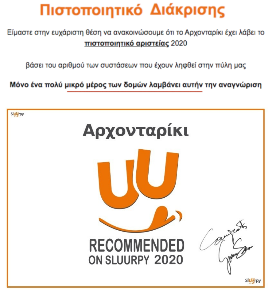 Ένα ακόμα Χρυσό Βραβείο για το 2020 και ένα Πιστοποιητικό Αριστείας από την ιστοσελίδα μετρήσεων Sluurpy!!!