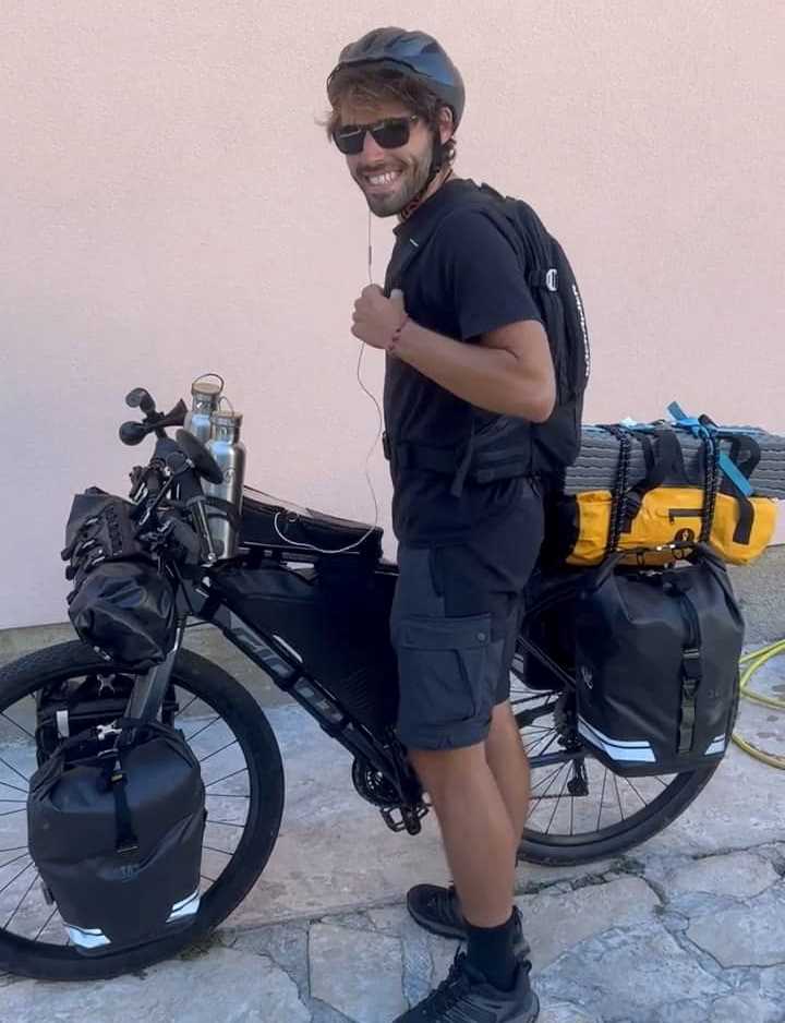 Φεύγοντας από την Ιταλία, ο ποδηλάτης γνώρισε το έδαφος των Βαλκανίων δηλ. την Σλοβενία, την Κροατία, το Μαυροβούνιο, την Αλβανία, φτάνοντας πριν λίγες μέρες στην Ελλάδα. Από εδώ θα συνεχίσει για την Τουρκία, όπου σχεδιάζει να σταματήσει για μεγαλύτερη παραμονή. Προγραμματίζει να επισκεφτεί την Κωνσταντινούπολη και την Καππαδοκία, θα συνεχίσει προς το Ιράκ, το Ιράν, το Πακιστάν, την Ινδία, το Μπαγκλαντές, τη Μιανμάρ και τέλος, καλώς εχόντων των πραγμάτων, να καταλήξει στον πολυαναμενόμενο προορισμό, την Ταϊλάνδη. Το ψευδώνυμο του είναι viagatoro από το ''viagatore'' που σημαίνει «Ταξιδευτής».