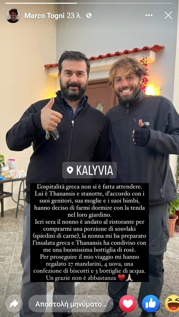 Ευχόμαστε στον Μάρκο Τόνι, καλή συνέχεια, καλό ταξίδι και να πετύχει τον στόχο του, φτάνοντας ασφαλής και γεμάτος εμπειρίες στον προορισμό του!