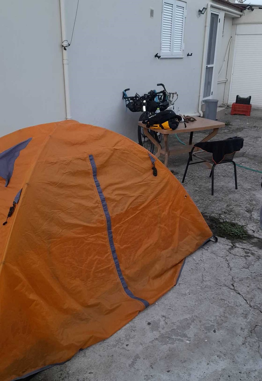 Είναι ο Θανάσης και απόψε, σε συμφωνία με τον οι γονείς του, την γυναίκα του και τα παιδιά του, αποφάσισαν να με αφήσουν να κοιμηθώ με την σκηνή στον κήπο τους.