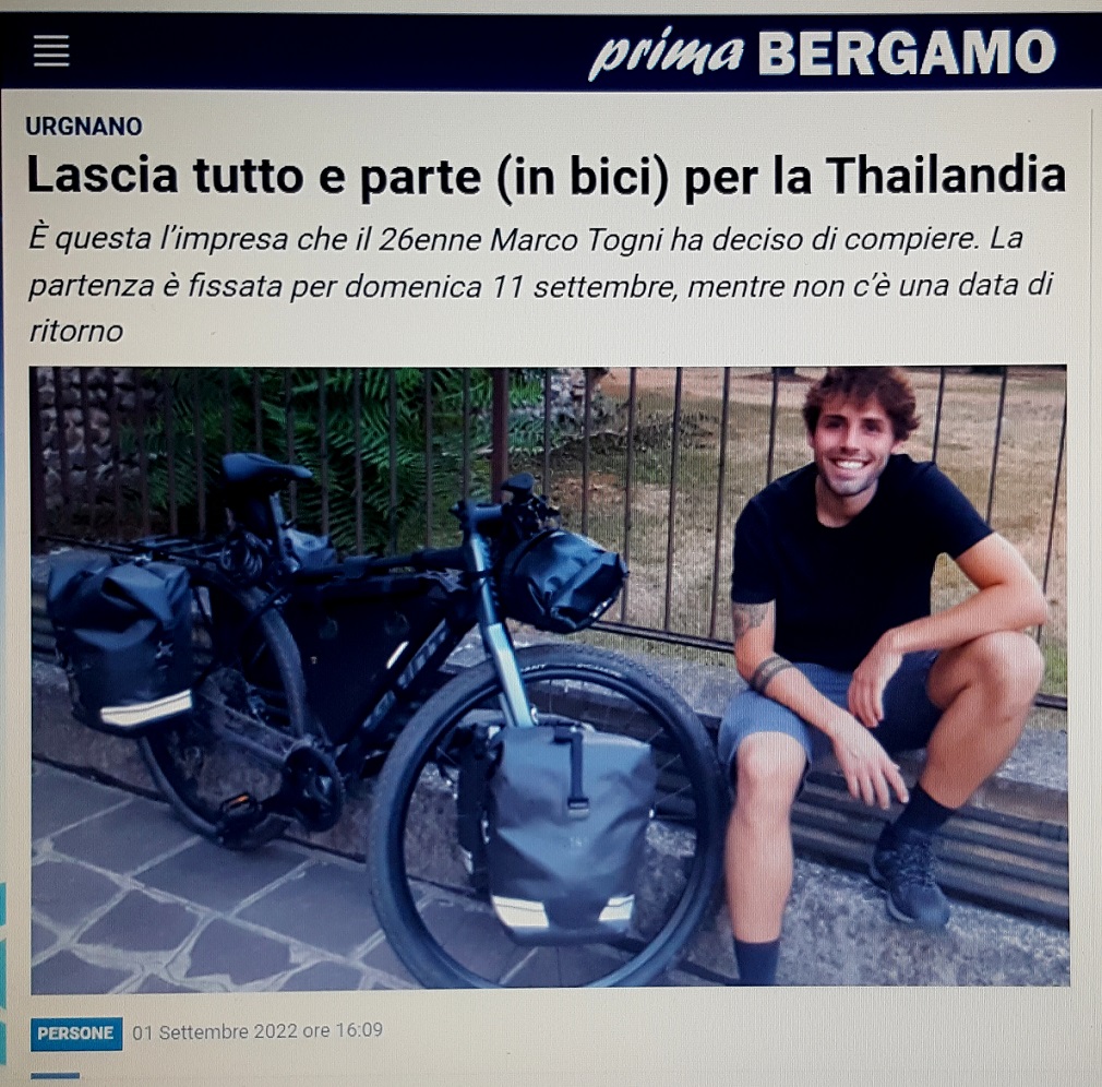 Αξίζει να αναφέρουμε ότι, η αναχώρηση του ¨τολμηρού¨ ποδηλάτη έγινε την Κυριακή 11 Σεπτεμβρίου 2022, από το Ούργκανο (Urgnano) την πατρίδα του Τόνι, μια κοινότητα στην επαρχία του Μπέργκαμο στην ιταλική περιοχή της Λομβαρδίας, που βρίσκεται περίπου 45 χιλιόμετρα βορειοανατολικά του Μιλάνου και περίπου 11 χιλιόμετρα νότια του Μπέργκαμο, ενώ δεν υπάρχει ημερομηνία επιστροφής.