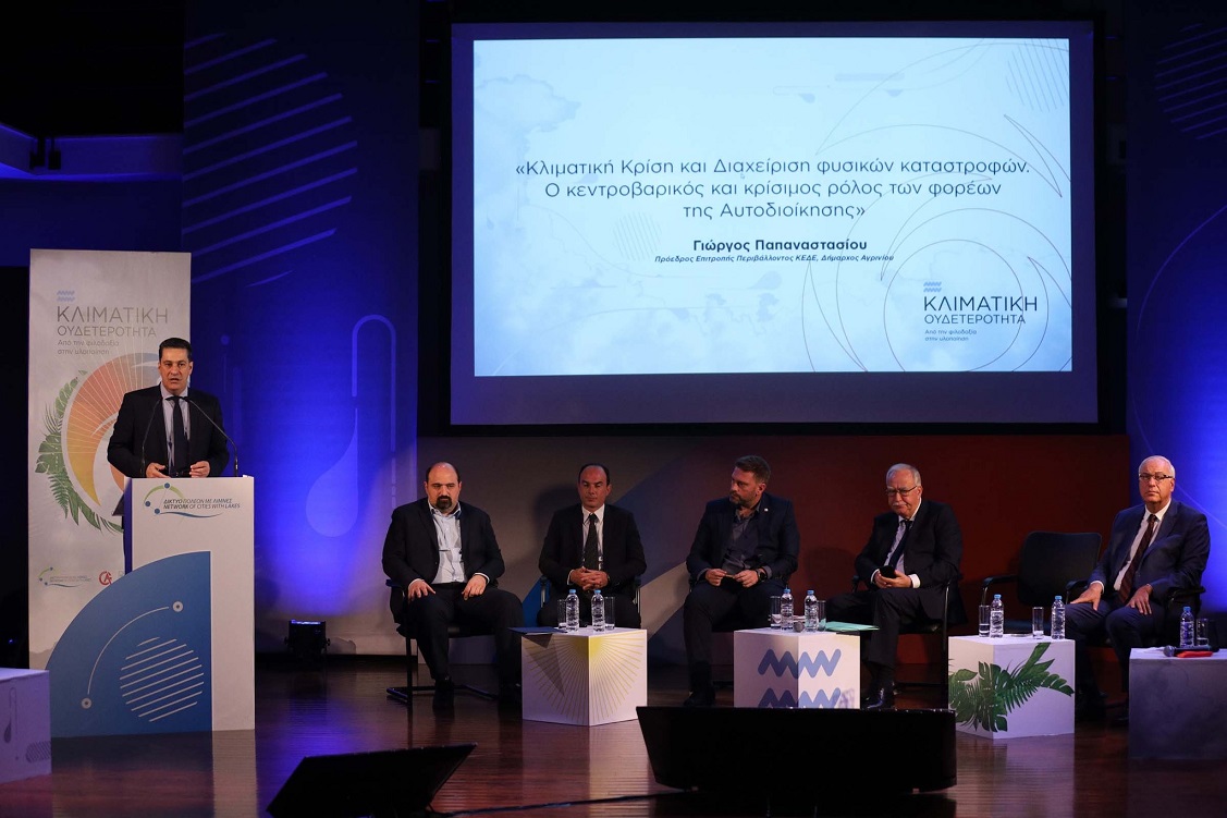 Ο Πρόεδρος του «Δικτύου Πόλεων με Λίμνες» Γιώργος Καπεντζώνης έθεσε θέμα ανταποδοτικών ωφελημάτων για τους Δήμους των περιοχών όπου λειτουργούν υδροηλεκτρικές μονάδες και είπε πως η τοπική αυτοδιοίκηση κινείται στην αλλαγή του ενεργειακού μοντέλου παραγωγής ενέργειας από τον ήλιο και τον αέρα και απεξάρτησης από τα ορυκτά καύσιμα. Για την ανθεκτικότητα στις συνέπειες της κλιματικής κρίσης, ο ίδιος τόνισε πως η τοπική αυτοδιοίκηση πρέπει να κινείται προληπτικά σχεδιάζοντας έργα που προλαμβάνουν τις φυσικές καταστροφές αλλά και κατασταλτικά, αντιμετωπίζοντας τις επιπτώσεις τους και αποκομίζοντας όφελος από τη διαχείριση τους.