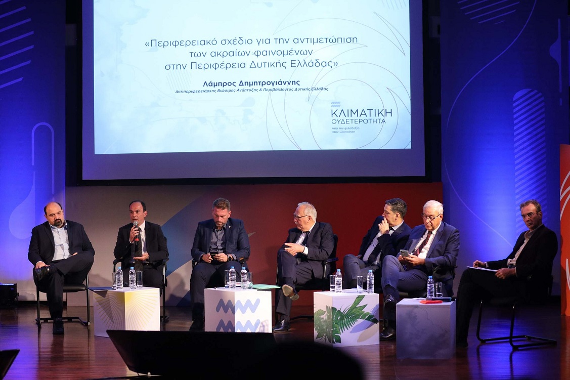 -Ο Αντιπεριφερειάρχης Βιώσιμης Ανάπτυξης & Περιβάλλοντος Δυτικής Ελλάδας Λάμπρος Δημητρογιάννης παρουσίασε το Περιφερειακό Σχέδιο για την αντιμετώπιση ακραίων φαινομένων στην Περιφέρεια Δυτικής Ελλάδας το οποίο αναμένεται να εγκριθεί από το Περιφερειακό Συμβούλιο τον Νοέμβριο. Σύμφωνα με τις εκτιμήσεις που επικαλέστηκε, η Δυτική Ελλάδα θα χτυπηθεί περισσότερο από κάθε άλλη από την κλιματική αλλαγή. Παράλληλα είναι σε εξέλιξη τρία πιλοτικά έργα (για πυροπροστασία, διάβρωση των ακτών και αντιπλημμυρικά έργα) που θα αποτελέσουν οδηγό για όλη τη χώρα.