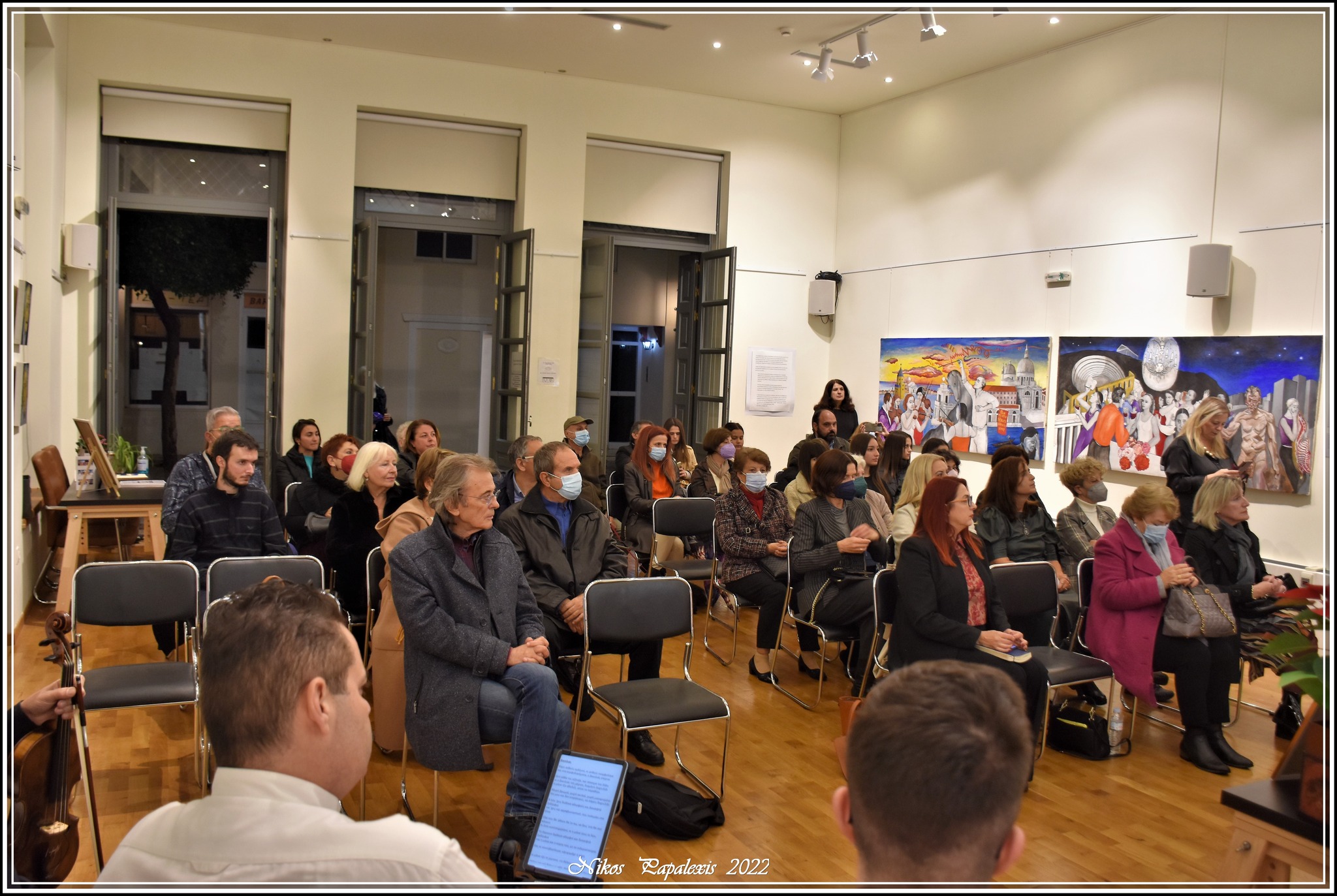 Η διάλεξη εμπλουτίστηκε καλλιτεχνικά με τις εκτελέσεις μουσικών κομματιών από τον δημιουργό Γιάννη Πανουκλιά, ο οποίος ερμήνευσε τραγούδια της παράδοσης όπου περιγράφουν διαφορετικά σενάρια γυναικτονιών: Ο Μενούσης, Η Αντρονίκη, Ο Βασιλιάς και η Κυρά Φροσύνη, ήταν τα μουσικά κομμάτια που ακούστηκαν.