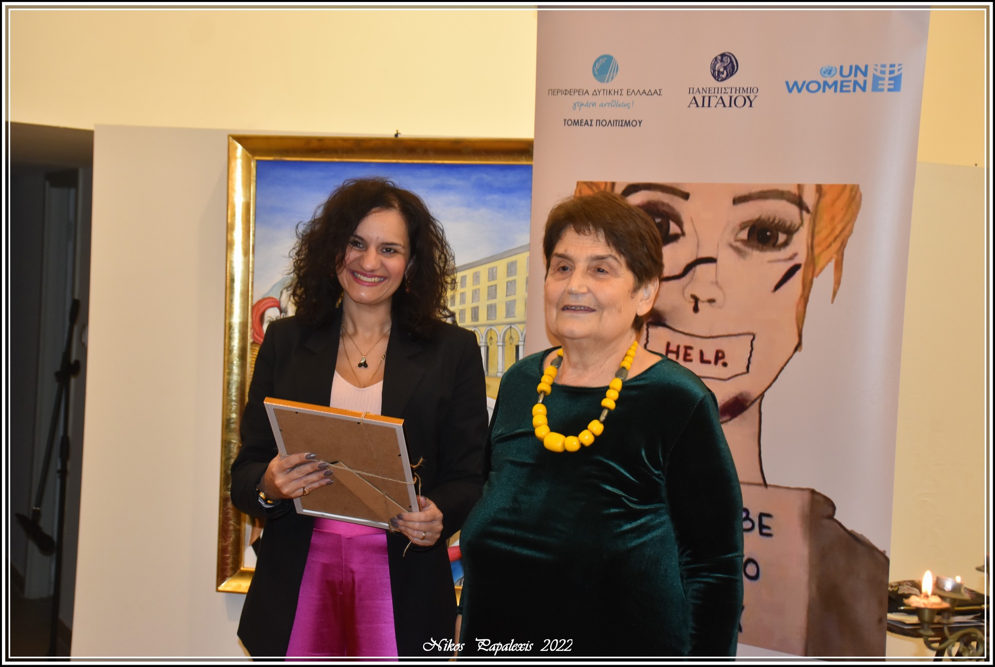 Μίλησαν επίσης, η πρόεδρος της Περιφερειακής Επιτροπής Ισότητας Φύλων, Αμαλία Βούλγαρη-Πολονύφη, η Φιλόλογος, Σοφία Λαναρά και η Καθηγήτρια του Γυμνασίου Αιτωλικού, Άντα Χαλαζιά, μια εκδήλωση που διοργανώθηκε από την Περιφέρεια Δυτικής Ελλάδας, σε συνεργασία με τον Οργανισμό Ηνωμένων Εθνών, στο πλαίσιο της Διεθνούς Ημέρας για την εξάλειψη της Βίας κατά των γυναικών.