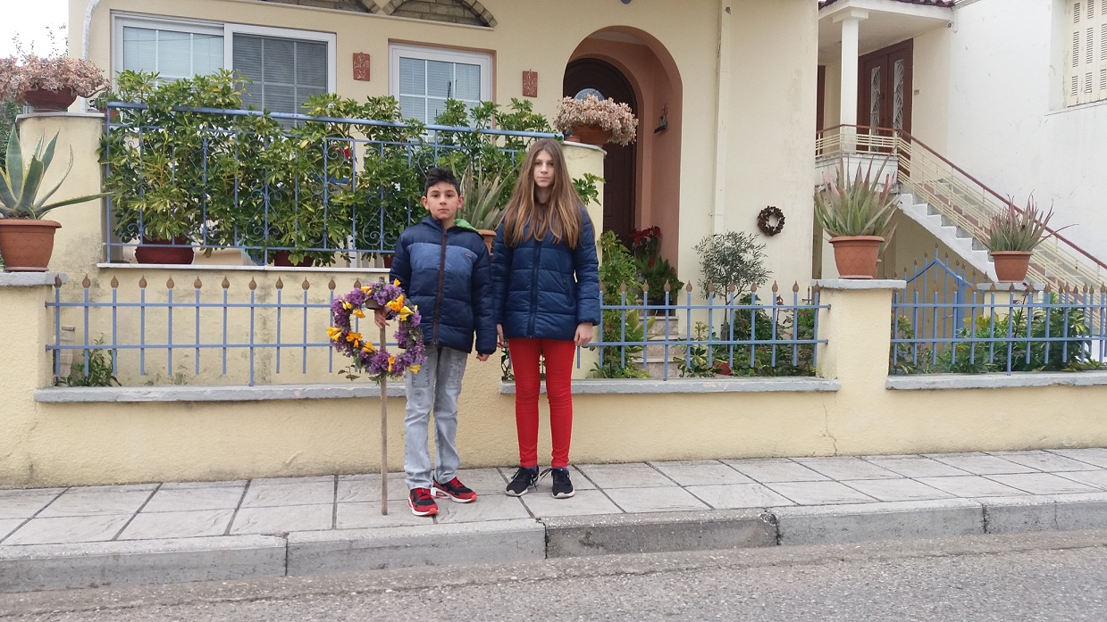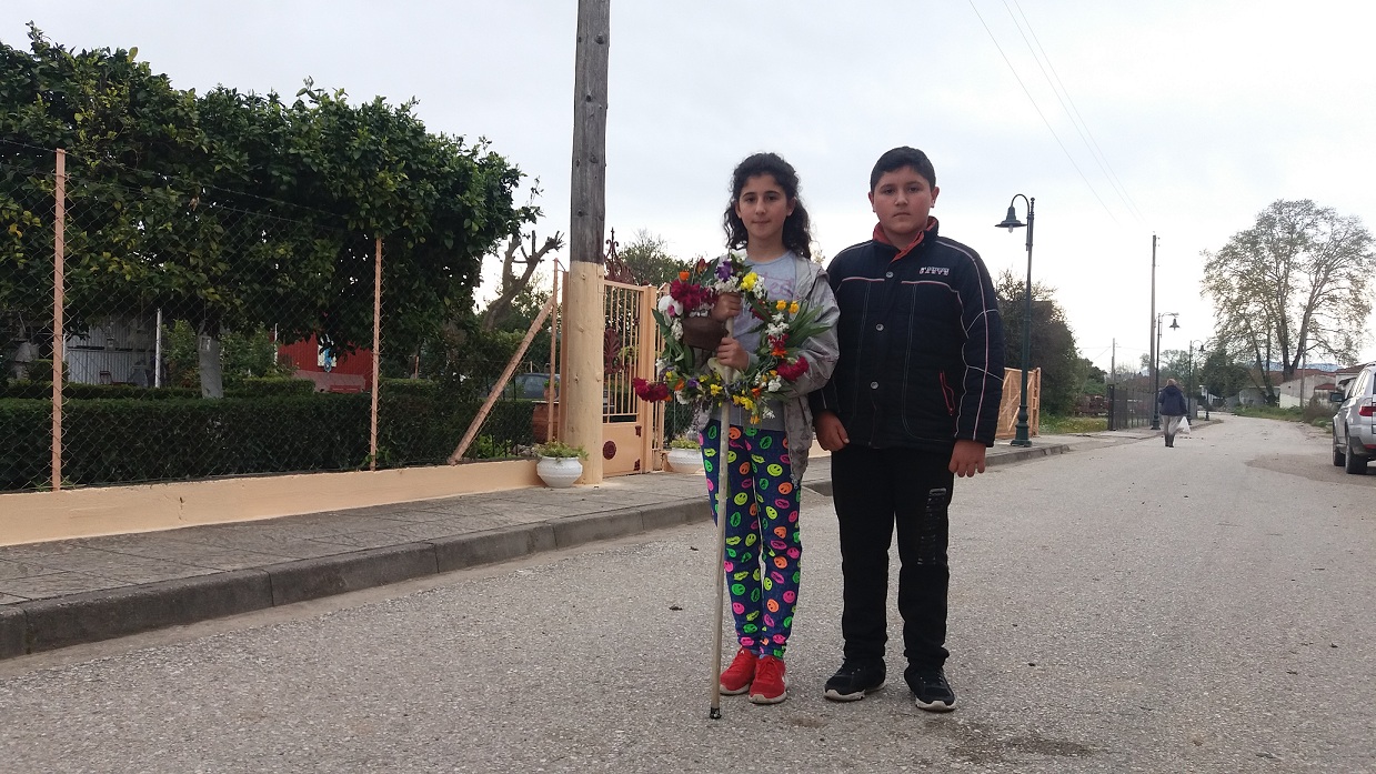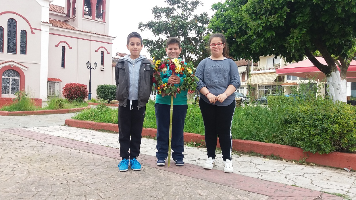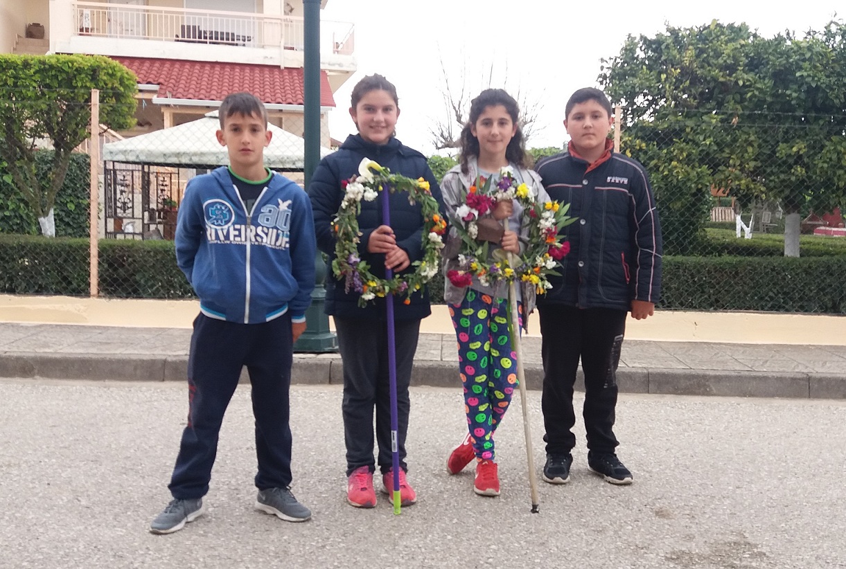 Αντίστοιχα τα μικρότερα παιδιά ετοίμασαν καλαθάκια με άνθη και από νωρίς το πρωί πέρασαν από σπίτι σε σπίτι και τραγούδησαν: