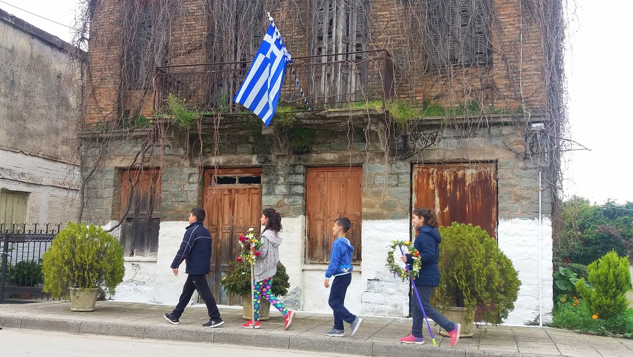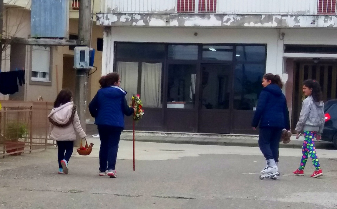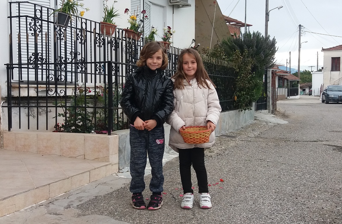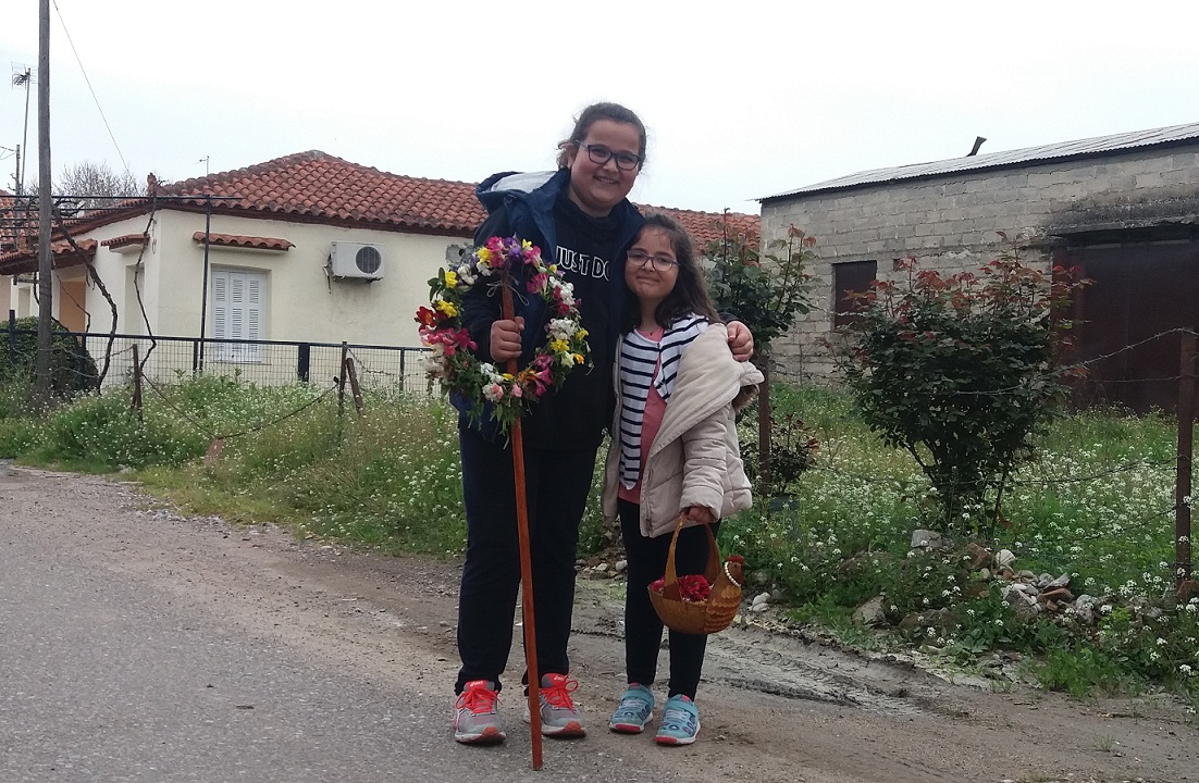 Αντίστοιχα τα μικρότερα παιδιά ετοίμασαν καλαθάκια με άνθη και από νωρίς το πρωί πέρασαν από σπίτι σε σπίτι και τραγούδησαν: