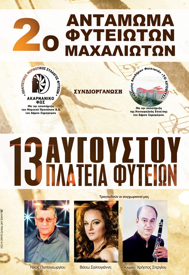 Συνδιοργάνωση: Πολιτιστικός & Μορφωτικός Σύλλογος Φυτειών Ακαρνανικό Φως (με την υποστήριξη του Ν. Π. Δ. Δ Δήμου Ξηρομέρου)