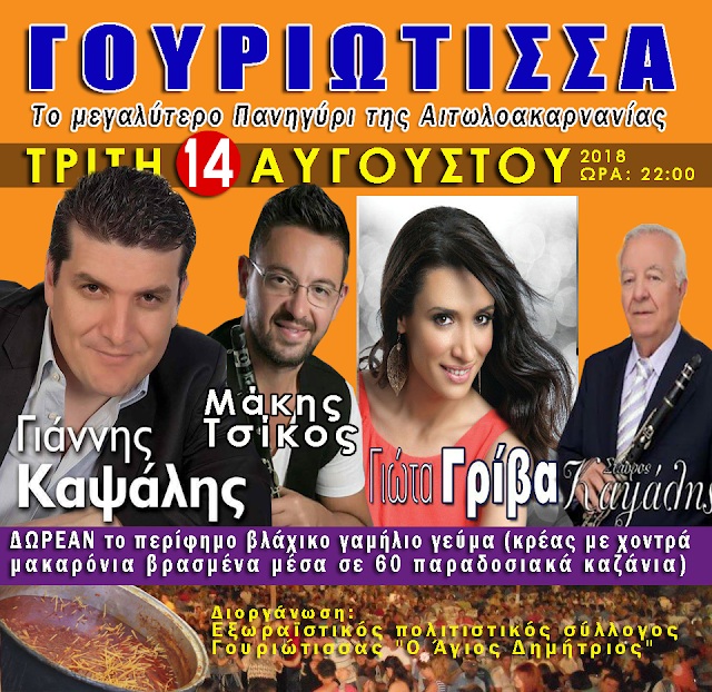 Διοργάνωση: Εξωραϊστικός πολιτιστικός σύλλογος Γουριώτισσας "Ο Άγιος Δημήτριος"
