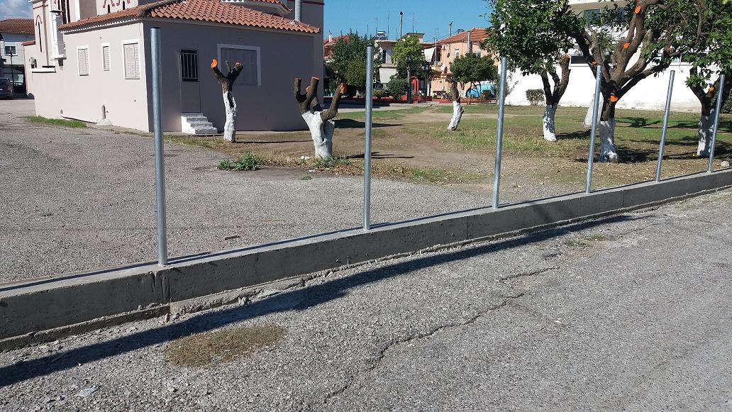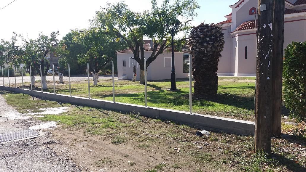 Έχουν γίνει τα κράσπεδα και έχουν μπει οι μεταλλικοί πάσσαλοι, θα ακολουθήσει η τοποθέτηση πλέγματος ενώ στην είσοδο θα υπάρχει συρόμενη πόρτα.