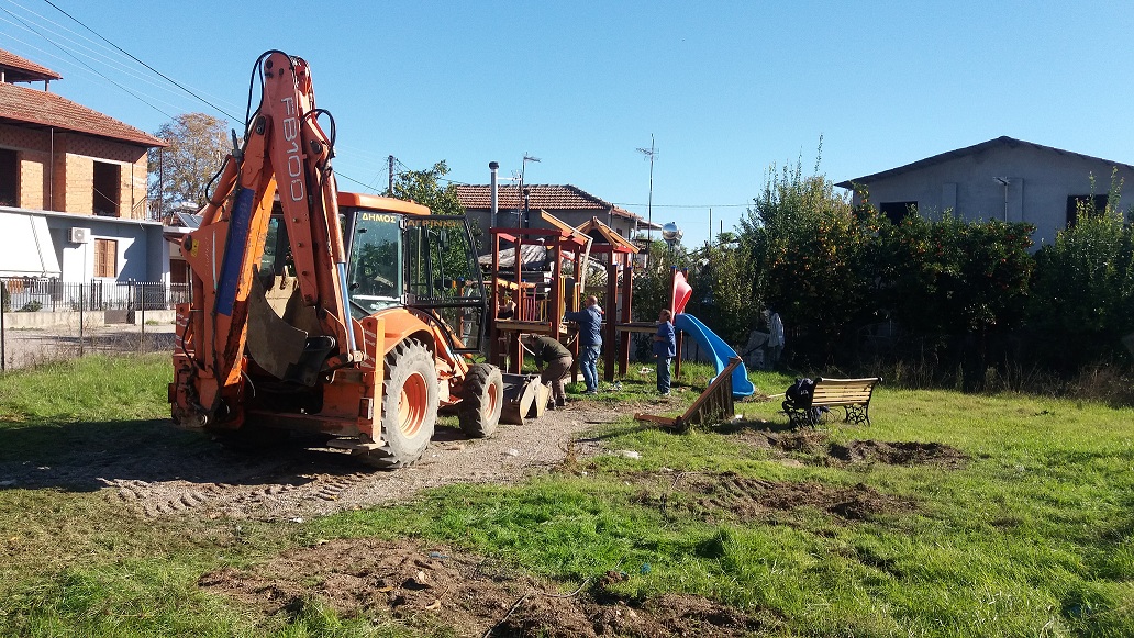 Όπως μας ανέφερε η επιβλέπουσα Αρχιτέκτονας, κα Β. Τηλιγάδα αφού είχαν προηγηθεί οι σχετικοί έλεγχοι και οι επιθεωρήσεις, τώρα γίνεται η απομάκρυνση των παλιών οργάνων και παιχνιδιών που κρίθηκαν επικίνδυνα, ο καθαρισμός του χώρου, ενώ αναμένεται από τη Θεσσαλονίκη η μεταφορά των νέων κατασκευών που θα τοποθετηθούν στην Παιδική Χαρά, έχοντας βέβαια λάβει ο δήμος, κάθε μέτρο προστασίας, με βάση και τις παρατηρήσεις του διαπιστευμένου φορέα (TUV HELLAS).