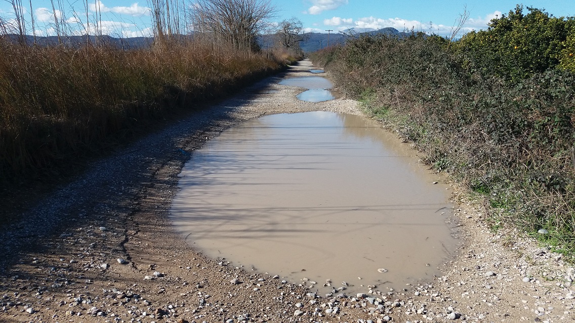 Επίσης, ο δρόμος από τις βροχές έχει γεμίσει λακκούβες, ενώ με δυσκολία, γίνεται η κυκλοφορία βαρέων οχημάτων που μεταφέρουν είτε βοθρολύματα για εναπόθεσή τους στον Βιολογικό,είτε των αγροτικών μηχανημάτων και των φορτηγών που μετέφεραν όλο το προηγούμενο διάστημα μεγάλες ποσότητες πορτοκαλιών από τα γύρω περιβόλια!