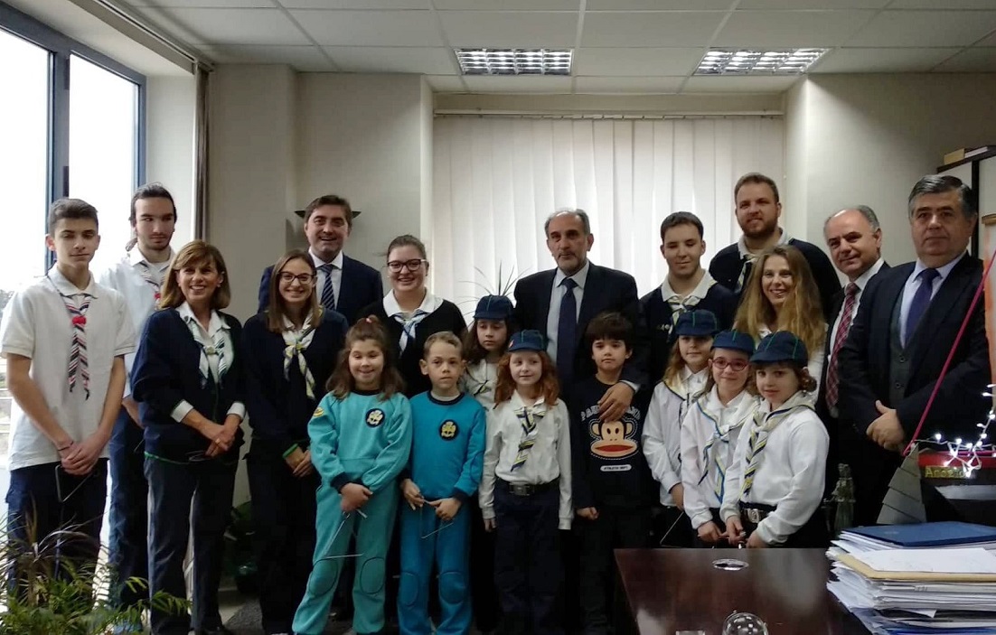 Στη συνέχεια ο Περιφερειάρχης, υποδέχθηκε στο γραφείο του τα δεκαέξι μέλη της αντιπροσωπείας του Σώματος Ελληνικού Οδηγισμού.